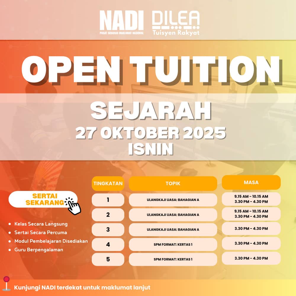 Jom sertai Open Tuition bersama NADI DILEA: Tuisyen Rakyat! đ