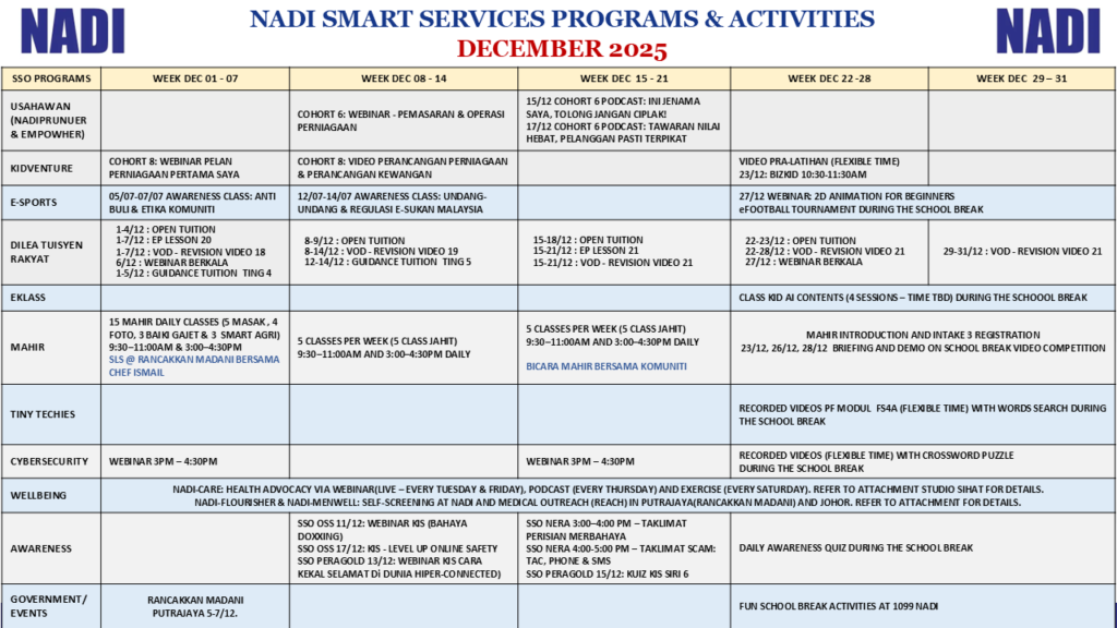 TAKWIM PERKHIDMATAN PINTAR NADI BULAN DISEMBER 2025